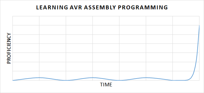 If you had any background in a high level language before you started learning AVR C, you probably found that programming concepts could be presented in small, digestable chunks that logically built on each other. Your progress was probably fairly steady and linear, with a slew of well thought out tutorials available online for any skill level.